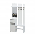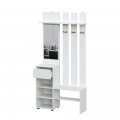 Вешалка Денвер в белом цвете поможет организовать систему хранения гардероба в современном интерьере. Для вашего удобства предусмотрены двухрожковые крючки для повседневной верхней одежды, широкая верхняя полка для головных уборов и шарфов, ниша для обуви, а также выдвижной ящик. За распашным фасадом находятся небольшие полки. Зеркало позволит оценить внешний вид перед выходом из дома.